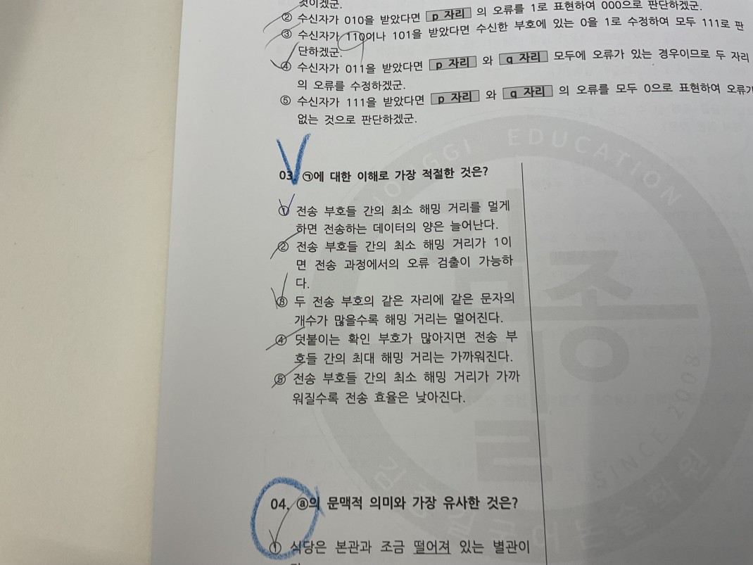 여기서 왜 1번이 답인지 모르겠습니다. 지문에서 ‘동일한 정보를 보낼때’ 라는 조건이 있는데 1번 선지는 그런 조건없이 해밍거리 멀게하면 데이터양이 늘어난다 라고 했으니까 틀리다고 봐야하는거 아닌가요?