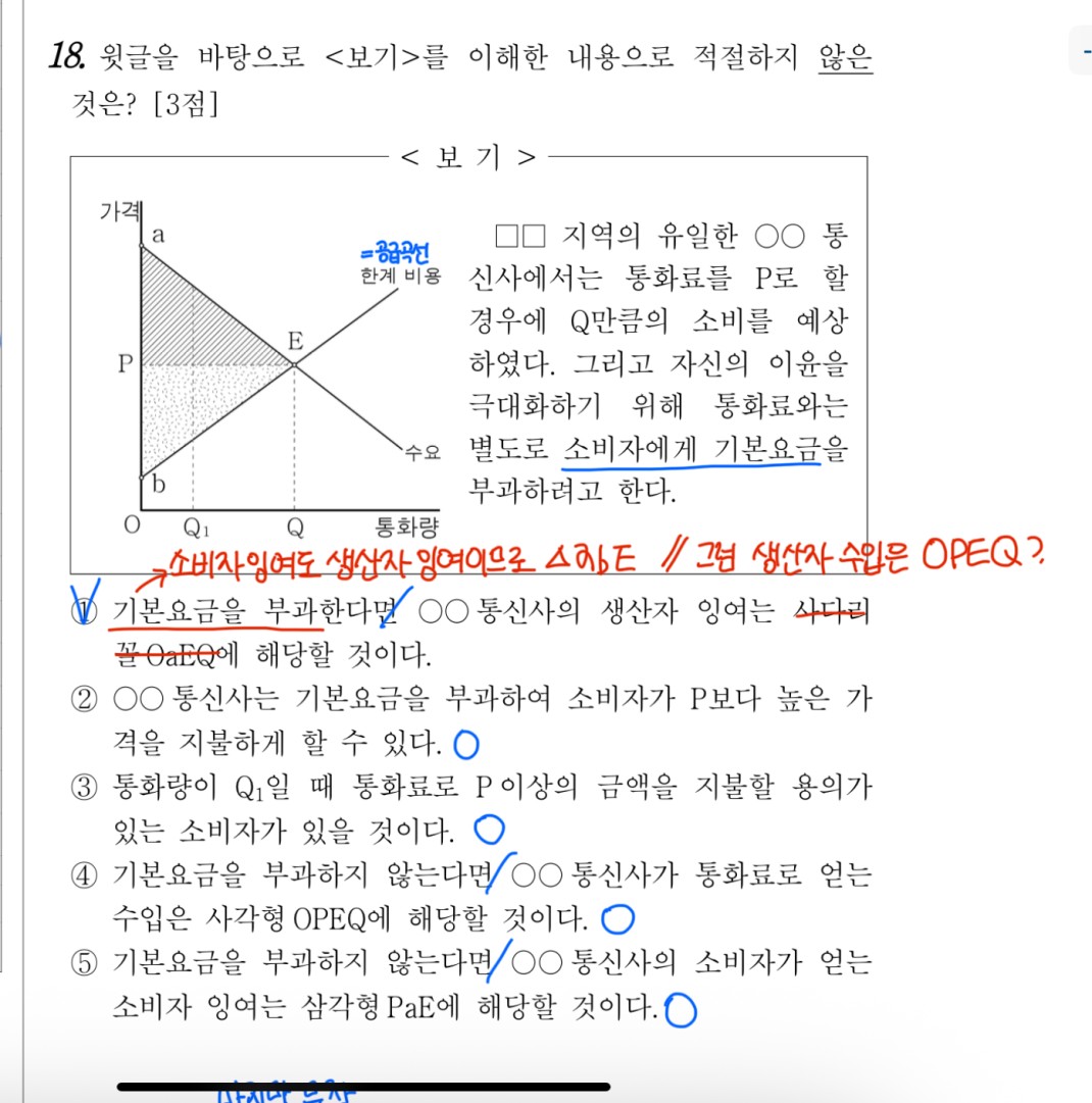 수능국어총론 2권 - 소비자잉여,생산자잉여 18번