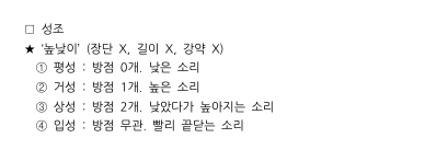 [선택지 ③] 상담 첨부 개념(성조)을 보면, 방점에 따라서 성조가 달라집니다. ㄷ의 파란 동그라미 쳐 놓은 점이 방점으로서, 이것이 성조를 표현하는 것입니다.