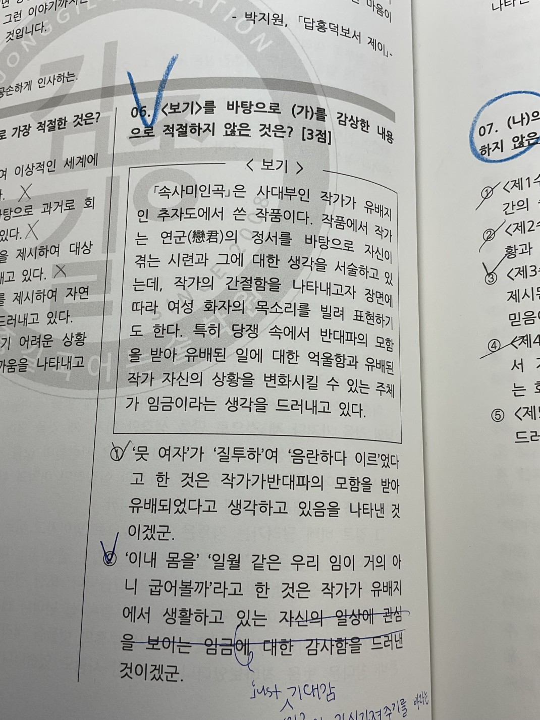(가)에서 질투의 주체가 화자라고 생각했었는데 1번 선지를 보면 아닌거같아서요ㅜ 그리고 질투하는건 믓 여자로다 하고 이어지는 우한한 이내 몸을 음란하다 이르로세 부분 해석을 못하겠습니다ㅜㅜ