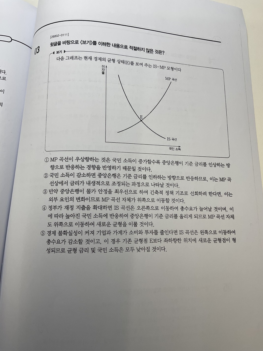 3번 문제 4번 선지는 LM 곡선이 아니라 MP곡선입니다.